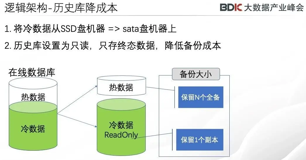 (2)通过终态数据进历史库,这样历史库是只读的,降低历史库的全量备份的存储成本,从而节约大量资金。