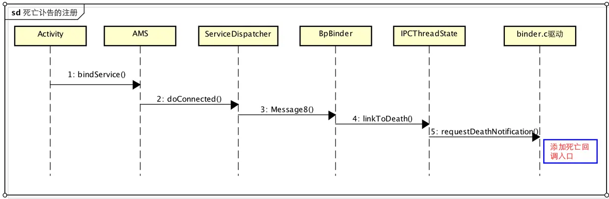 如此,死亡回调入口就被注册到binder内核驱动,之后,等到进程结束要释放binder的时候,就会触发死亡回调。
