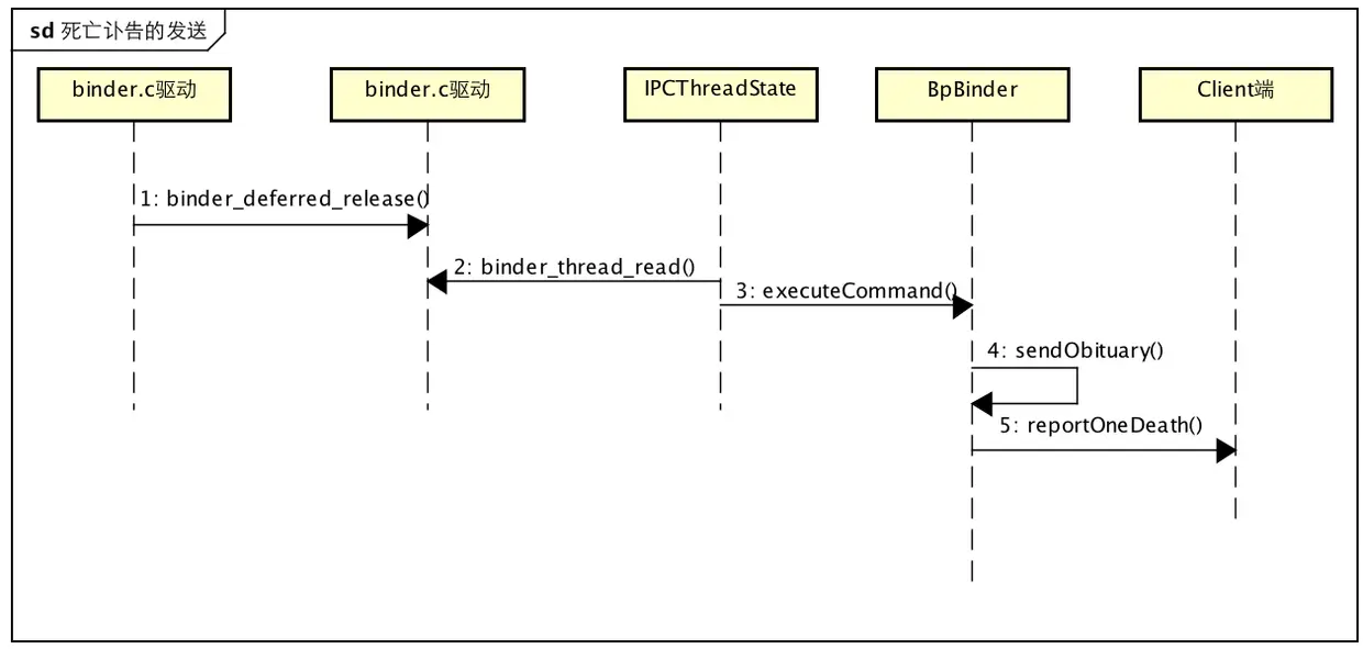 看关键点1,Obituary直译过来就是讣告,其实就是利用BpBinder发送讣告,待讣告处理结束后,再向Binder驱动发送确认通知。