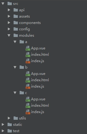 由于我们现在的项目是多模块的,每个模块都应该有独立的入口,所以我们修改src目录结构如下: