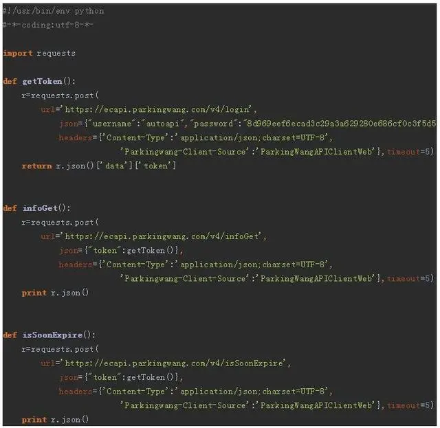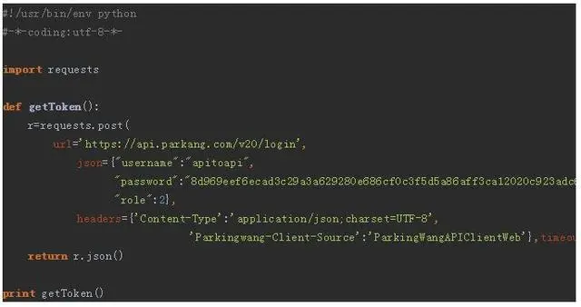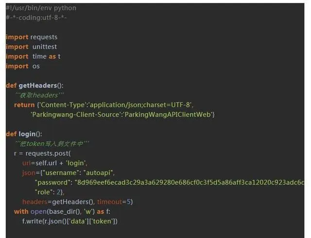 安装好requests好后,我们就可以开始了,关于requests有不清楚的,可以看Python接口测试之requests(七),这里我们直接来进行实战,我们再来进行回顾下我们需要做的事情,我们需要做的就是登录成功后,获取token,后面的接口都需要这个参数,所以我们需要把获取的token当作参数来进行传递,在这里我们来思考一个问题,在python的函数中,为什么会有返回值?返回值可以干什么?python中,函数的返回值是为了给另外一个函数传递参数,传递参数可以理解为是通过自动将对象赋值给本地变量名来实现。OK,下面我们就来使用实现这个过程,我们首先使用代码来实现登录的接口并且获取返回的json字符串,见实现的代码: