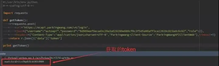 我们可以看到,获取的内容是json字符串,经过反序列化后,数据类型是字典(dict),按字典的方式来获取token就很简单的,见获取token的代码: