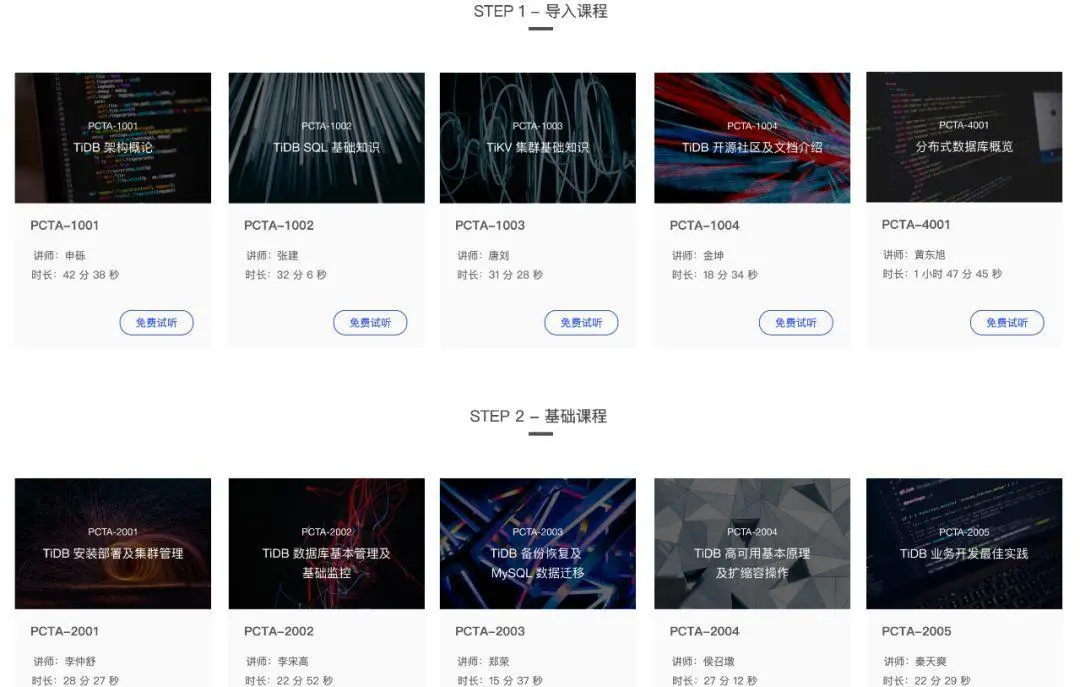 PingCAP University 官方网校(university.pingcap.com/) 已正式上线,欢迎进入线上网校学习,免费线上基础课程有助于学员快速了解 TiDB 产品全貌。学员除了可以在线自主学习外,还可以在讲师集中答疑中深入交流,优秀学员还可享受线下培训的奖励计划。