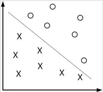 来表示,所以可以认为我们找到了一个划分超平面,这个超平面能够将正负样本区分开。为了直观理解,下图是在二维空间中线性可分的情况下超平面划分样本的示意图(二维空间中,超平面会是一条直线)。