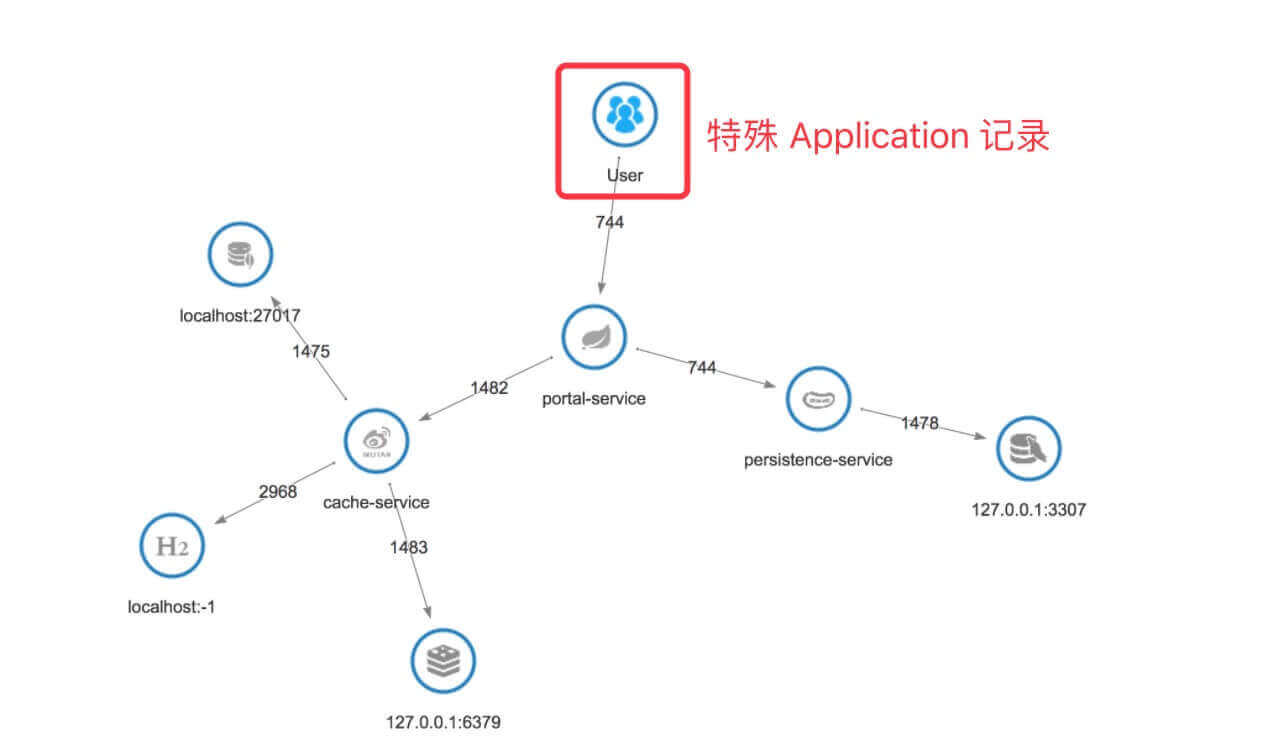 applicationId = 1,applicationCode = User,用于表示用户发起请求。在 SkyWaling UI 中,我们可以看到该条 Application 记录如下图: