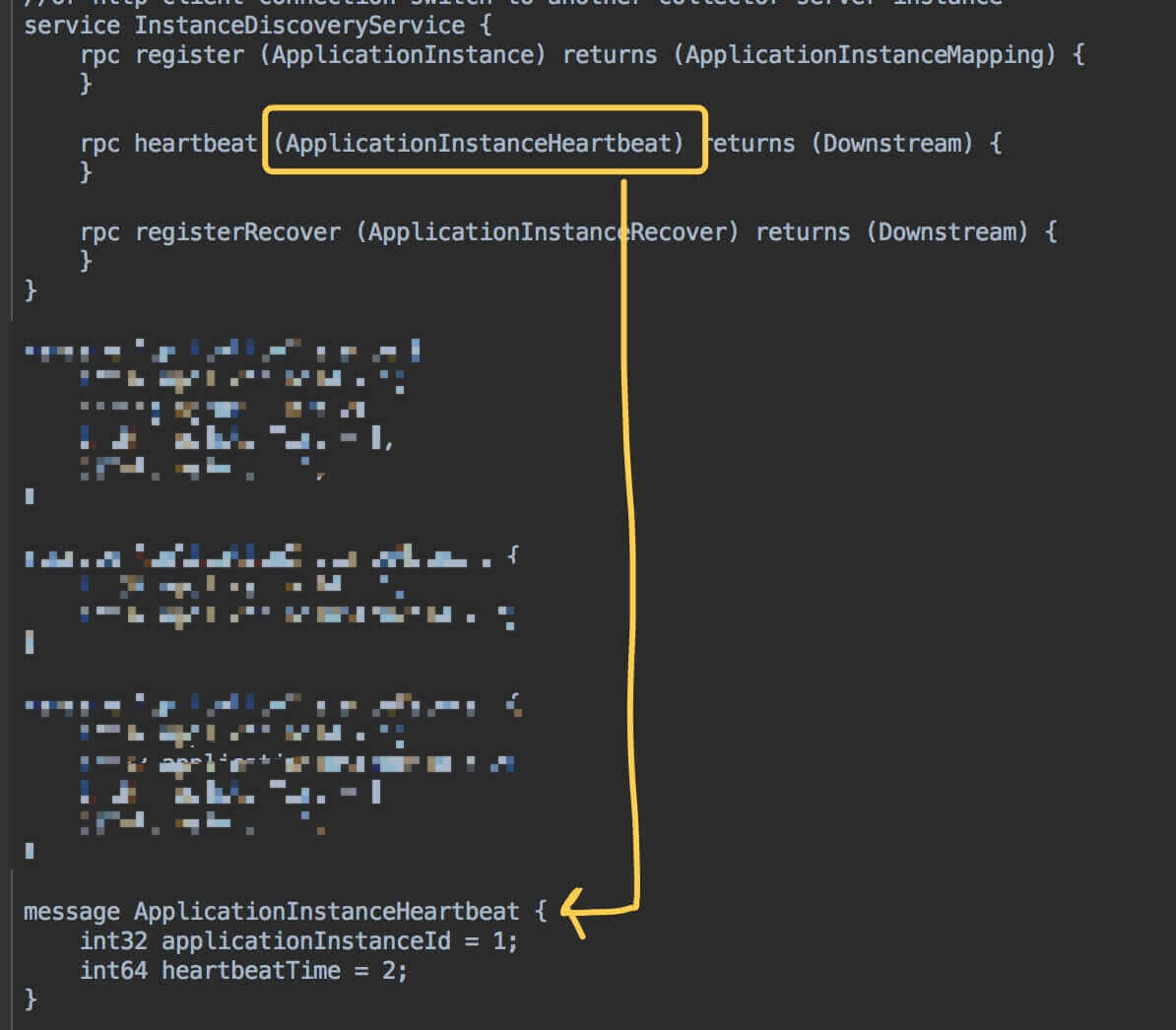 InstanceDiscoveryServiceHandler#heartbeat(ApplicationInstanceHeartbeat, StreamObserver<org.skywalking.apm.network.proto.Downstream>) ,目前该方法暂未实现。实现后,会首先调用一个 Service 方法,而后调用 InstanceEsRegisterDAO#updateHeartbeatTime(instanceId, heartbeatTime) 方法,记录应用实例的心跳时间。