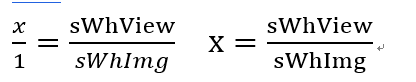 将这两个矩形的高归一,两个矩形的大小就变为了:(sWhImg,1)和(sWhView,1),这里的归一表示将两个矩形等比缩小,将纵坐标变为1。
