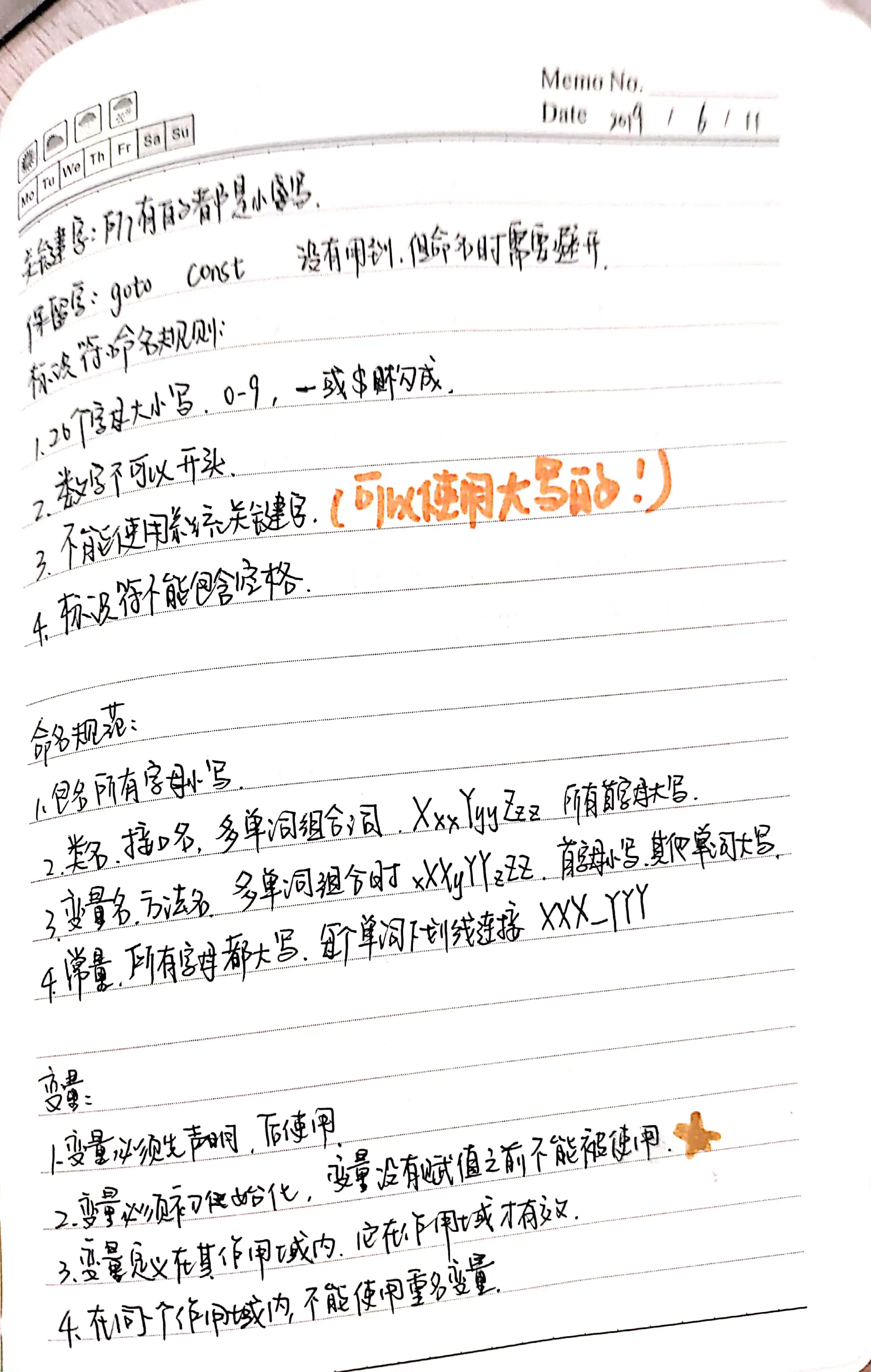 1.命名组成是由26个字母以及0-9数字,_或者$符号命名。