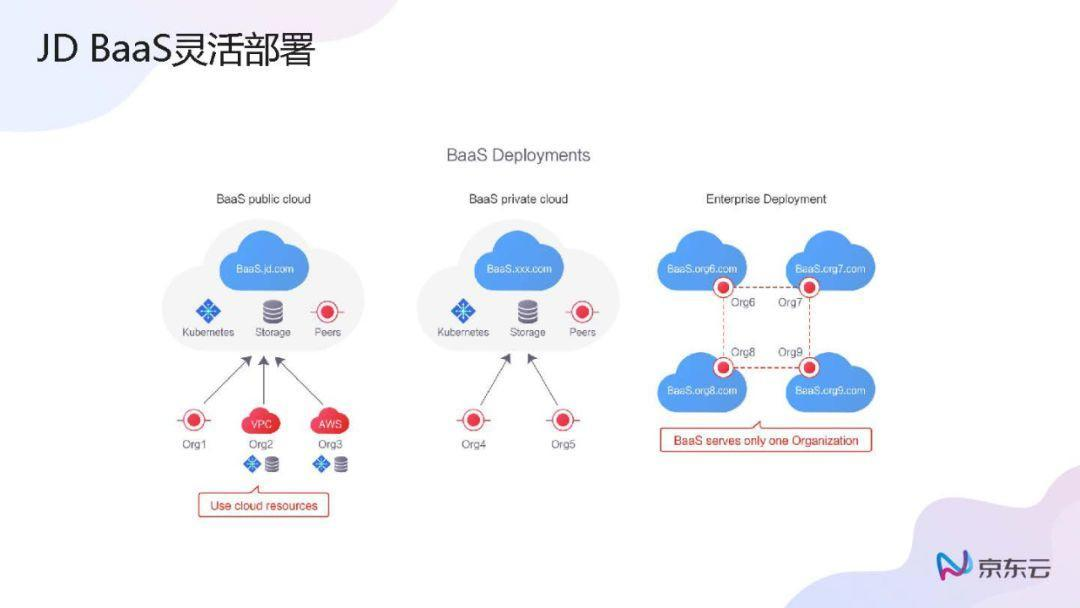 如果是BaaS可以被认为是汽车发动机的“底盘”,有了底盘就可以围绕底盘配置其他零部件,JD Chain就是里面的“发动机”,适用于不同的场景的区块链应用场景。BaaS帮助企业或者开发者搭上区块链的“顺风车”,而且京东也整合了很多在BaaS平台基础上的应用服务。