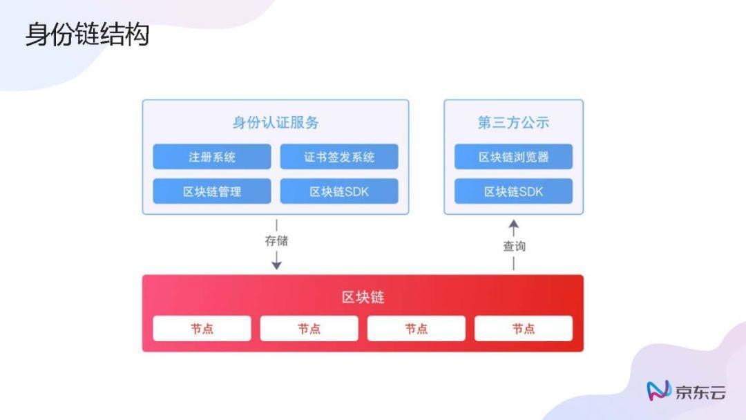 在这个过程中,无论是企业还是个人的身份认证信息都会存储到区块链中,在区块链节点之间做一个协同,包括对外展示都是基于身份认证发生一系列关系,这较之无认证的关系发生将有很大的区别,也是未来比较看好的方向。