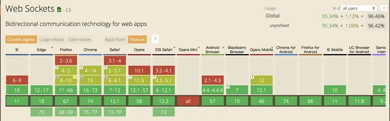 随着新标准的推进,WebSocket 已经比较成熟了,并且各个主流浏览器对 WebSocket 的支持情况比较好(不兼容低版本 IE,IE 10 以下)