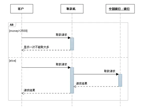 用来指明在两个或更多的消息序列之间的互斥的选择,相当于经典的if..else..
