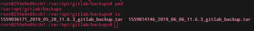这时在 /var/opt/gitlab/backup 目录会有备份文件,文件名类似 1559814146_2019_06_06_11.6.3_gitlab_backup.tar;