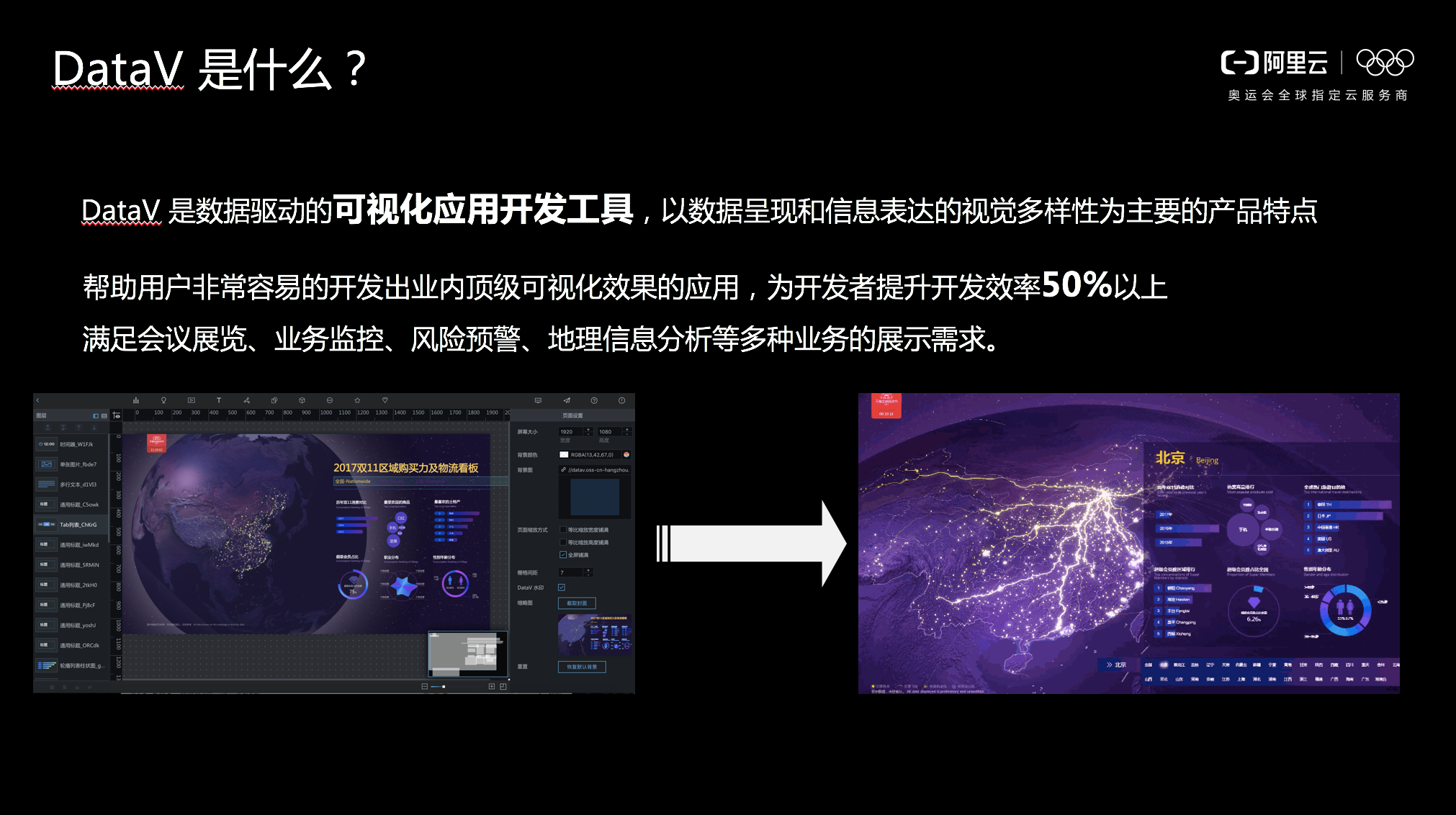 1、阿里云DataV专业版发布,为可视化创造更多可能!