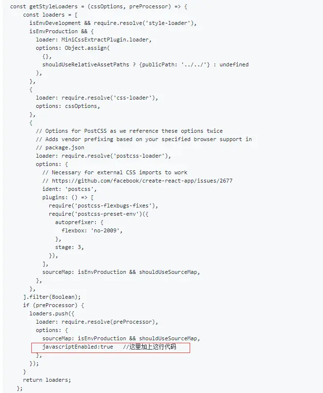 第二种就是不需要降低less版本来配置webpack.config.dev.js和webpack.config.prod.js或者webpack.config.js: