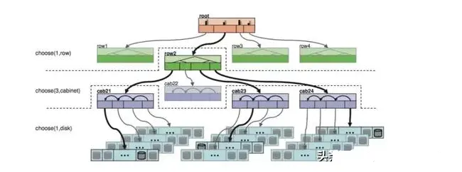 如图所示是 一次定位 的过程,最终选择了一个 row 下的 cab21,cab23,cab24 三个机柜下的三个存储节点。