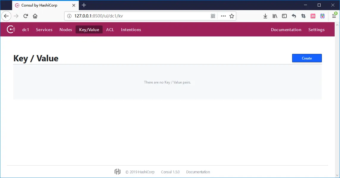 然后在web管理界面选择key/value,点击create,新增配置信息