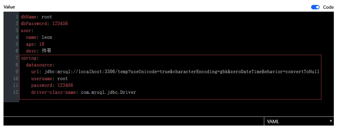 填入value值后点击save保存即可。注意如果是YAML格式,那么数据间的冒号后要有空格。