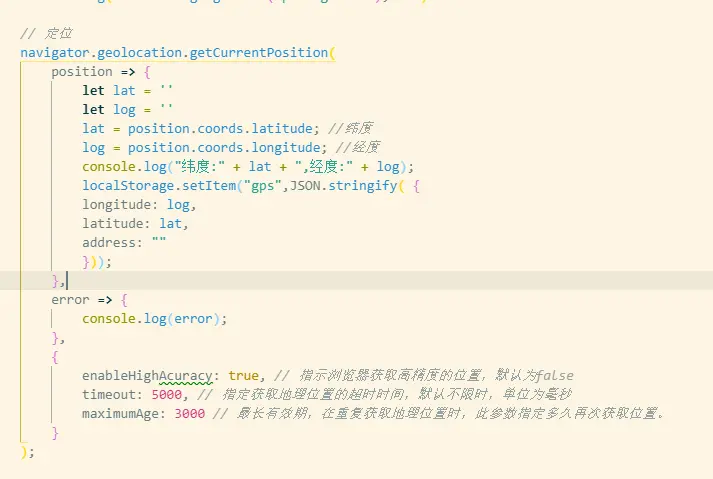 maximumAge: 3000 // 最长有效期,在重复获取地理位置时,此参数指定多久再次获取位置。