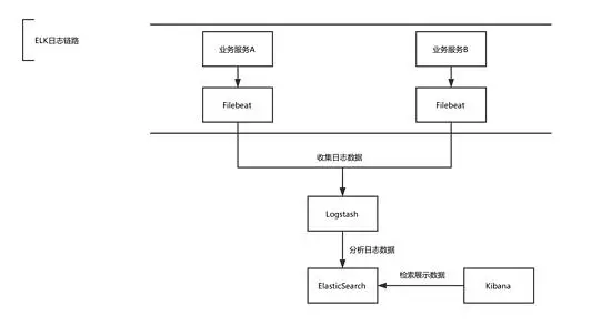 上面图中已经很详细介绍了下 ELK 的流程,ELK 默认技术栈里是没有 Filebeat 的,Logstash 用作日志收集的时候,CPU 和内存会占用资源比较大,所以我们使用轻量化的 Filebeat 进行日志的收集,Filebeat 部署在每个业务服务所在的服务器,然后将收集到的日志数据传输到 Logstash,Logstash 可以部署两到三台服务器上,用作日志的过滤和分析工作,然后再将处理后的日志数据,传输到 ElasticSearch 存储。