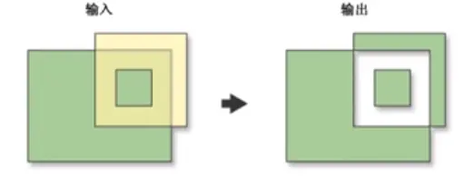 通过将输入要素与擦除要素的多边形相叠加来创建要素类,只将输入要素处于擦除要素外部边界之外的部分复制到输入要素类。