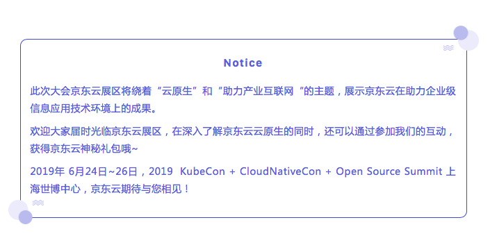 作为社区一员,京东云也会积极采用CNCF的项目、参与开发贡献并与其他成员一同合作共建社区。在即将开始的KubeCon+CloudNativeCon和Open Source Summit(China,2019)活动中,我们的技术专家在现场将为大家带来《利用延迟加载快速启动 Docker 容器》话题分享,通过京东云研发的容器镜像延迟加载技术,优化 Docker 镜像的加载过程,显著提高容器的启动速度。同时,还有**《Kubernetes 中 MySQL 容器的正确大小和自动扩展》、《使用 Vitess 的两年:京东如何运行全球最大的 Vitess》、《在 Kubernetes 中经济高效地调度大量容器》**的主题演讲。