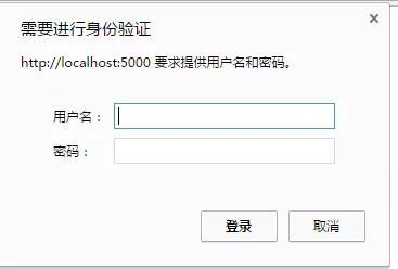 依据错误的信息可以获取到,发送的请求需要有通过HTTP的认证的认证信息,如果在浏览器中访问,会直接弹出需要输入用户名和密码的弹出框,见截图: