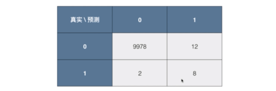 - 10000个人中,9978个人本没患癌症,同时算法预测也没患癌症。