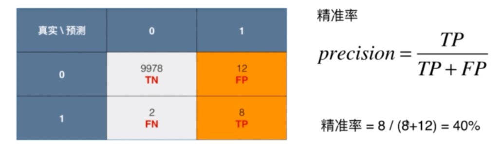 癌症系统:有偏数据中,1是患癌症的事件,在预测有癌症的人群中,有40%的人是预测对的。 金融系统:有偏数据中,1是股票上涨,我们预测了20个股票上涨,有8个是预测对的。