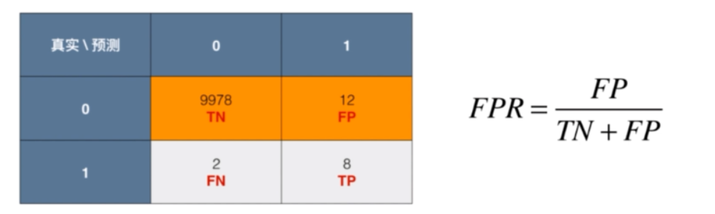 FPR: 预测为1,可惜预测错了,真实值不为1的概率