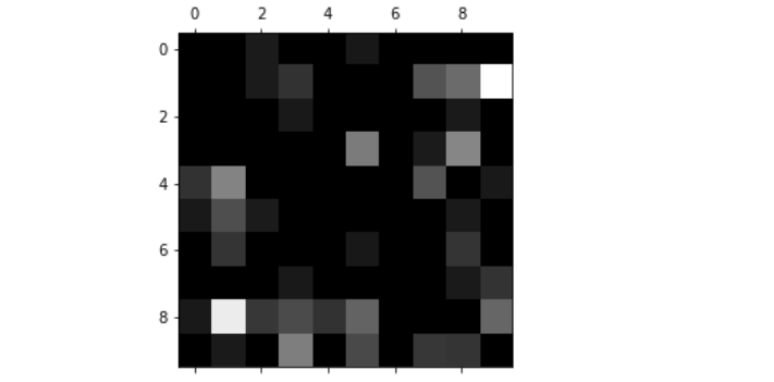 上图说明(1,9)和(8,1)很亮,说明这两个犯得错误更多一些, 此时在算法层面上,可以单独调整一下这两个分类的模型, 另外也可以分析下样本数据,是否数据上有什么问题。