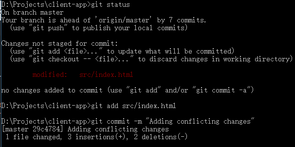 commit之后, 状态就不再是merging了, 但是会出现一个未被追踪的文件: