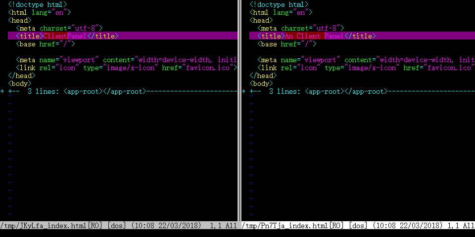 我这台电脑没有配置p4merge, 所以默认的可能是使用vimdiff可视化工具: