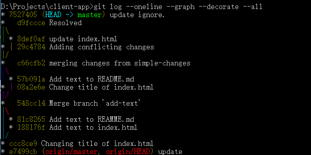 因为我现在还没有做任何更改, 所以这些分支都指向同一个commit, 其实分支就是标签/指针而已.