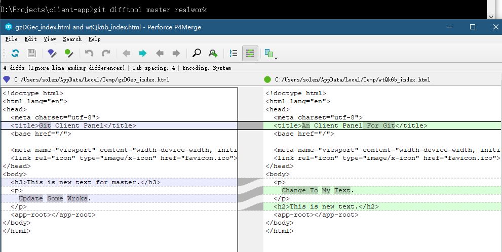 git mergetool. 这个命令将会打开p4merge(我本机配置的mergetool):