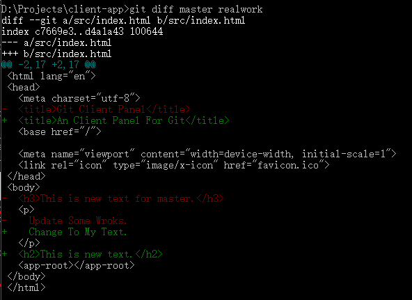 而这时index.html并不是realwork分支修改后的样子, 而是修改之前的样子: