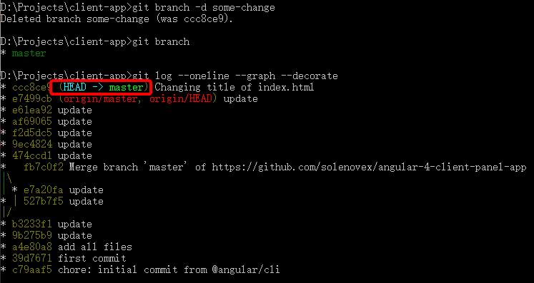 可以看到, 删除分支以后, log里面分支的名没有了, 但是分支还在.