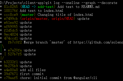 现在在 add-text这个分支上, 有两个commit, 看下log: