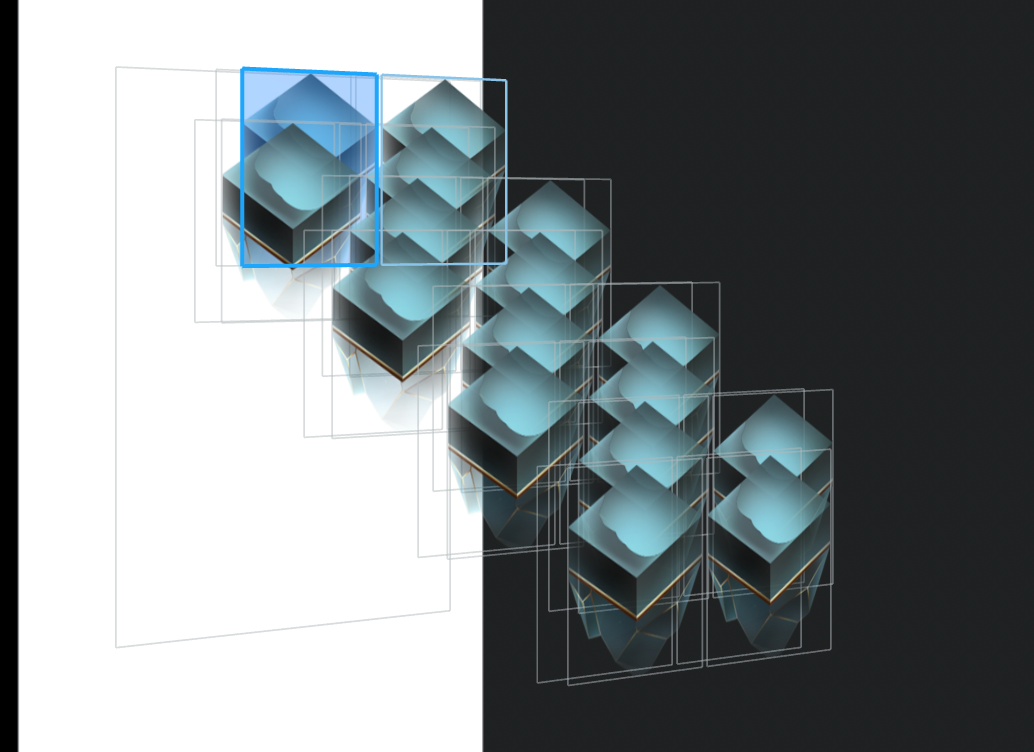 要实现如下图的密集排列并且相互遮挡的菱形按钮效果: