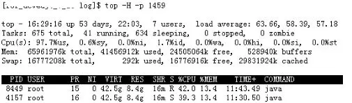 图 5. 通过 top –H -p 查看运行时间较长 Java 线程