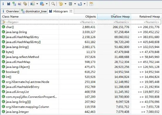 图 9 是 MAT 使用示例,MAT 有两列显示对象大小,分别是 Shallow size 和 Retained size。