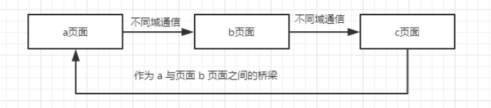 - 但是在IE和Chrome下不允许子页面直接修改父页面的hash值,于是在b页面中通过iframe嵌入一个与a同域的代理页面c,通过c将数据传给a