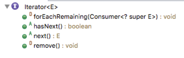 Java的Iterator就是迭代器模式的接口,只要实现了该接口,就相当于应用了迭代器模式: