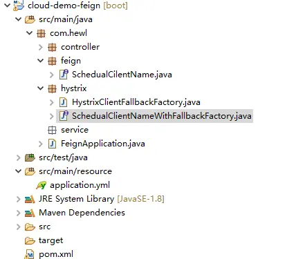 新建feign断路器接口SchedualClientNameWithFallbackFactory和断路器的实现类HystrixClientFallbackFactory