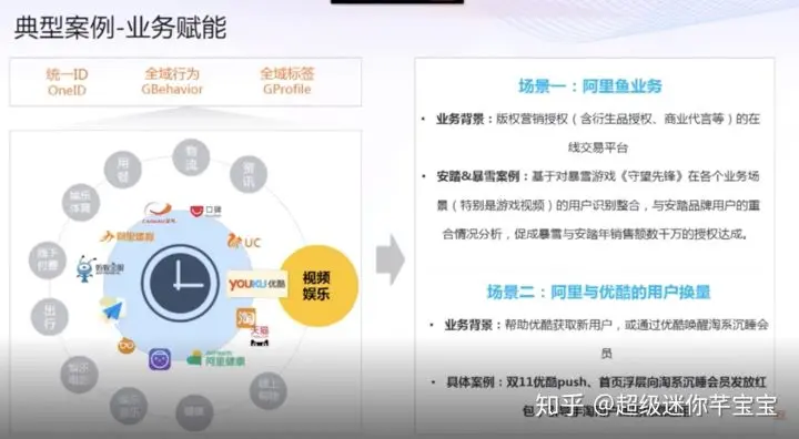 这张图其实就是我们从Hadoop迁到MaxCompute平台上以来,两个非常经典的案例。我们通过数据中台对不同场景的用户打通,来去赋能到两个不同的场景,提升业务价值。
