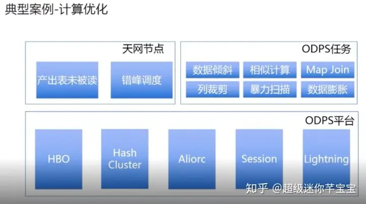 从节点的粒度上,通过大数据来治理大数据,我们可以算出哪些表产出来之后,多少天没有被读取的,包括它的访问跨度可能没有那么大的,我们会去做下线或者去做治理,有一些业务场景可能并不是非常的重要或者它的时间要求没有那么高,比如一些算法训练,可以去做一些错峰的调度,保证水位不要太高。从MaxCompute任务的角度,可以算出哪些任务有数据倾斜、哪些数据可能会有相似计算,哪些任务需要去做MapJoin,哪些任务需要去做一些裁剪,然后来节省它的IO。还有哪些任务会去做暴力扫描,扫一个月、扫一年的数据,哪些数据可能会有这样一个数据膨胀,比如说它做了CUBE之类的这种复杂计算,一些算法模型的迭代;我们通过数据计算出来的这些迹象,去反推用户,来去提高它的这样一个数据的质量分,来去达到我们降低整个计算资源的目的。