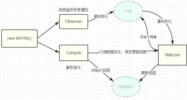 - observe:一个数据监听器,对数据对象的所有属性,包括子属性进行监听,如果发生变化,拿到最新值并通知订阅者