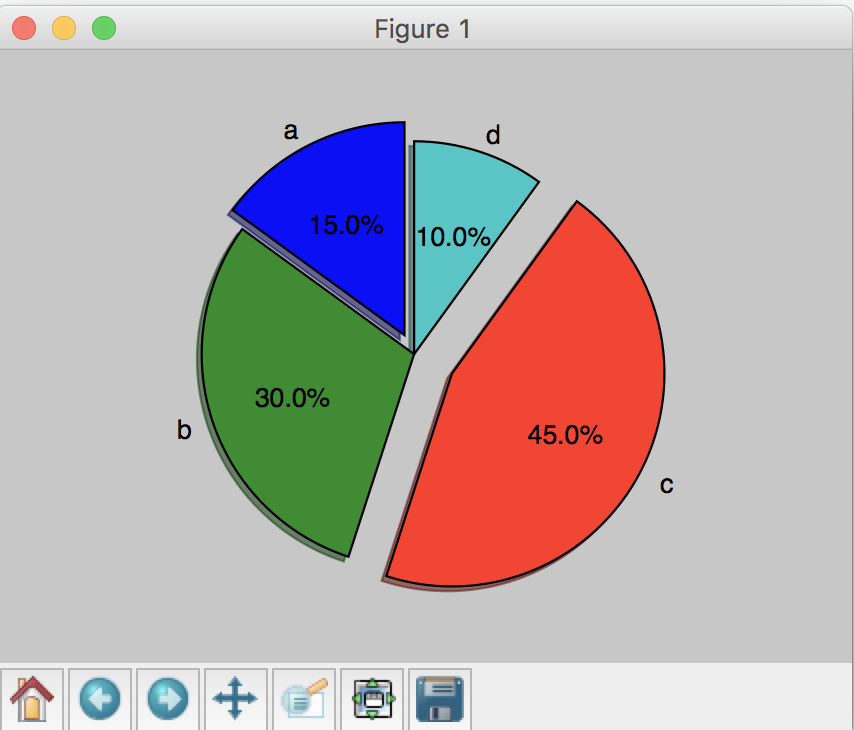 >>> ax1.pie(sizes,explode=explode,labels=labels,autopct='%1.1f%%',shadow=True,startangle=90)