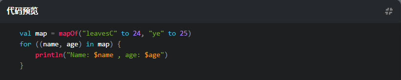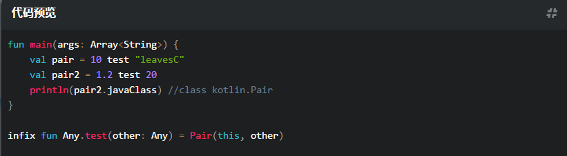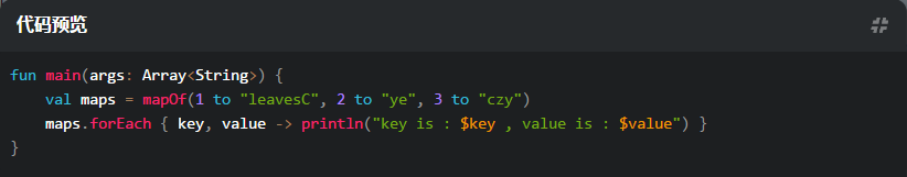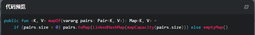 对于mapOf函数来说,它可以接收不定数量的Pair类型对象,因此我们也可以通过自定义的中缀调用符test来创建一个 map 变量