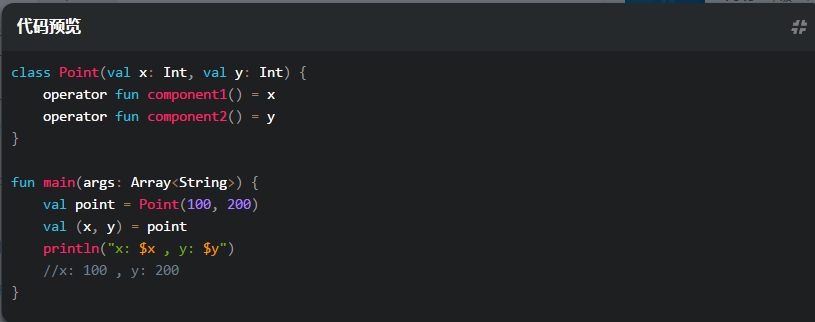 有时会有把一个对象解构成多个变量的需求,在 Kotlin 中这种语法称为解构声明